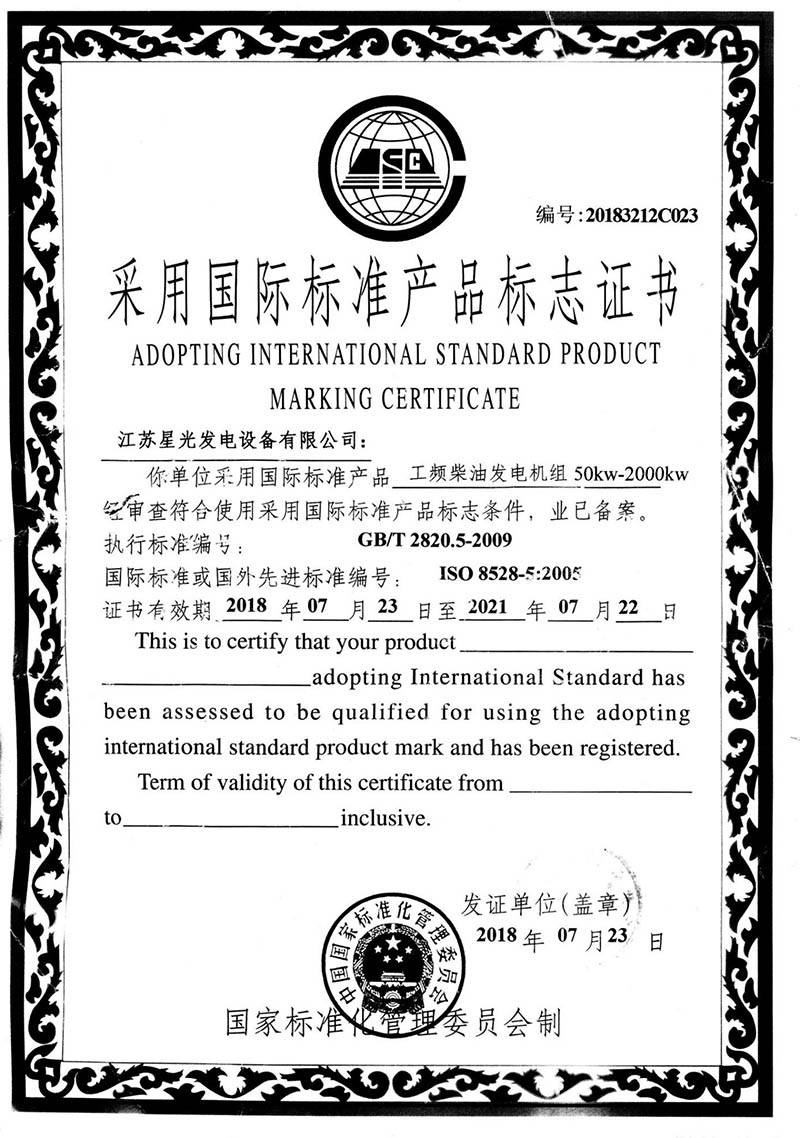 采用國際標(biāo)準(zhǔn)產(chǎn)品標(biāo)志證書